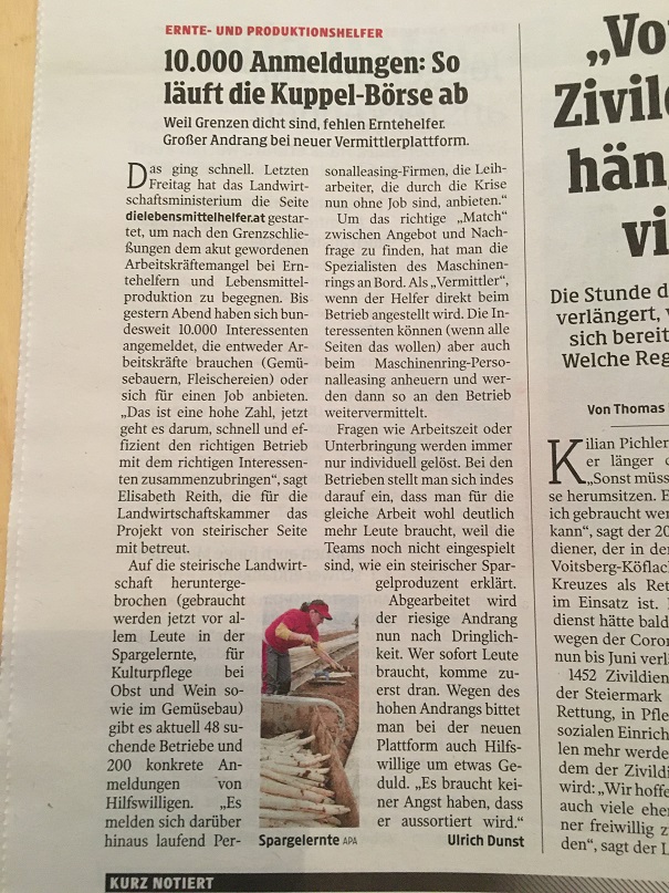 Kleine Zeitung, 3.Mai 2020